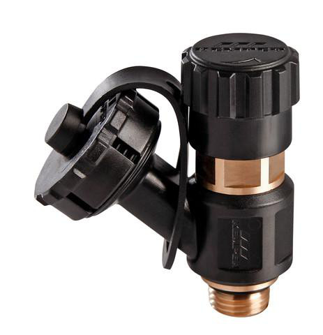 Aftapningsventil med 3/8" gevind og 3/4" afgang. Denne model er udført i rødgods.
