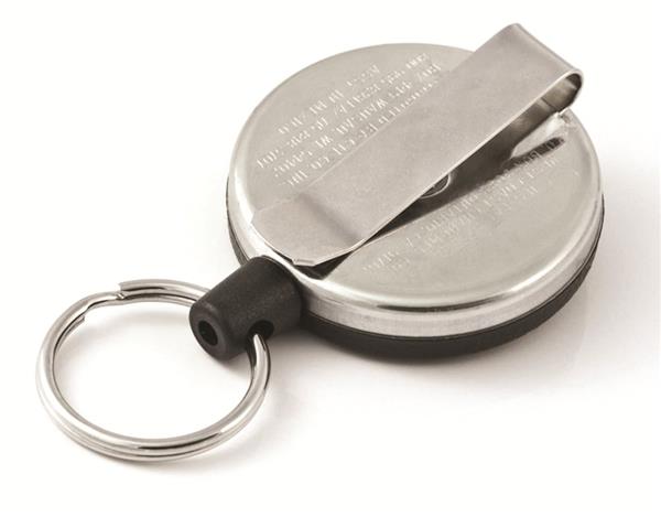 KEY-BAK nøgleholder med bælteclips. Kan anvendes til nøgler, værktøj, håndlygter m.m. Har plads til 15 nøgler og 120 cm KEVLAR snor.