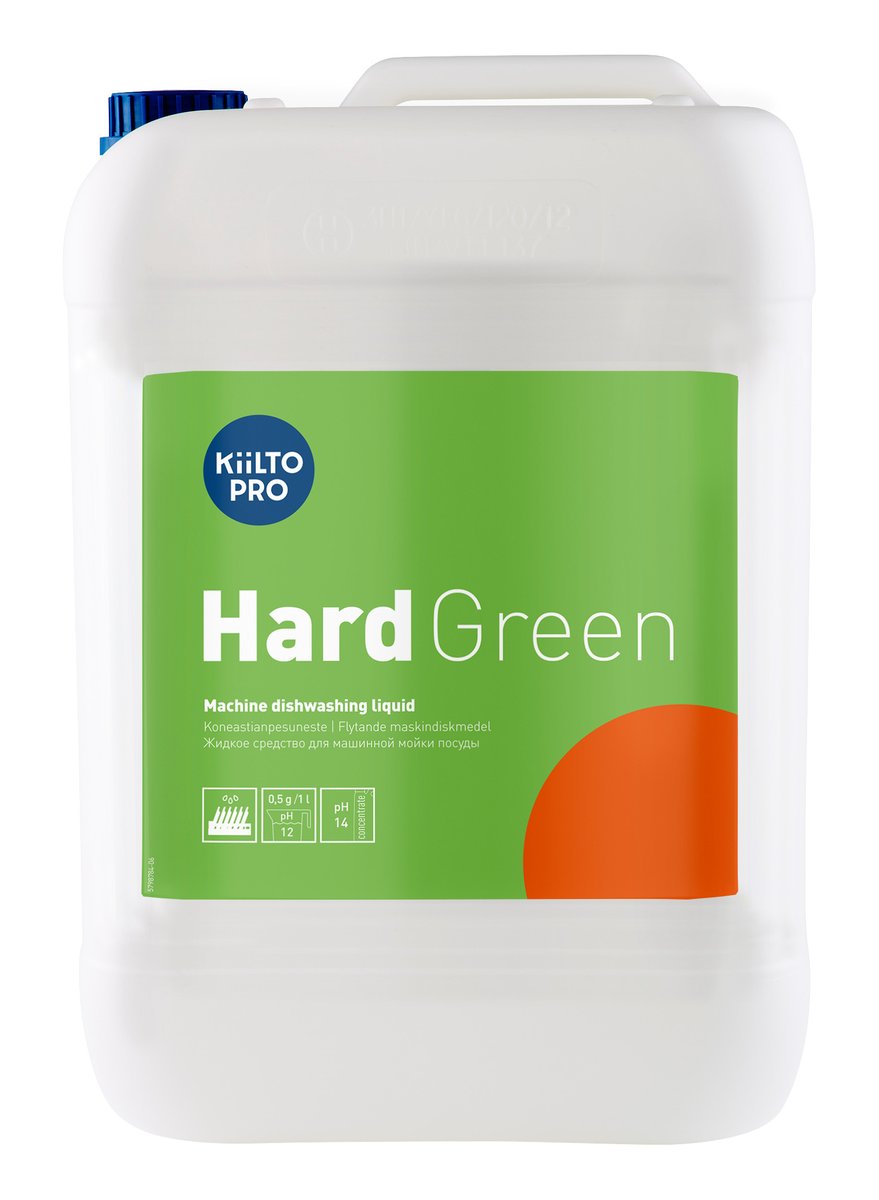 Kiilto Pro MD Hard Green er en effektiv flydende maskinopvask, specielt udviklet til brug i opvaskemaskiner med hårdt og meget hårdt vand. Produktet sikrer en effektiv rengøring og efterlader servicet skinnende rent.