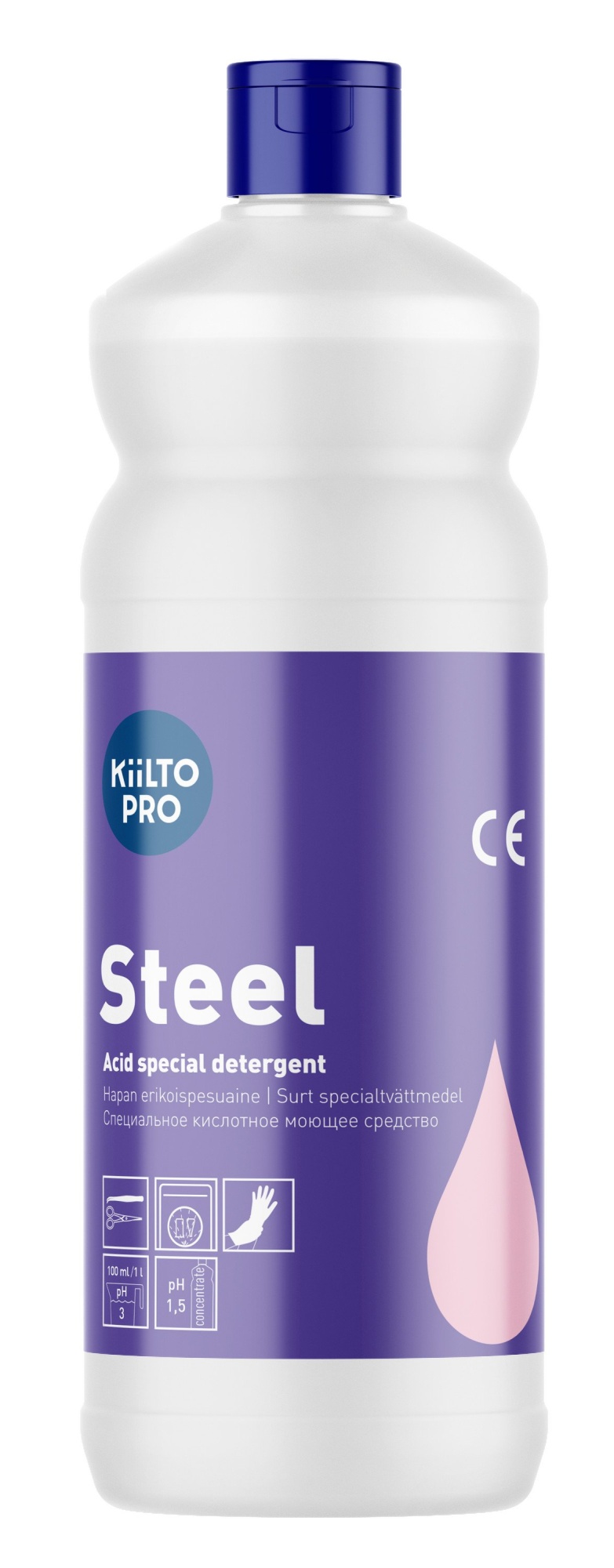 Kiilto Pro Steel er et syreholdigt specialrengøringsmiddel, der er ideelt til rengøring af instrumentvaskemaskiner og instrumenter.