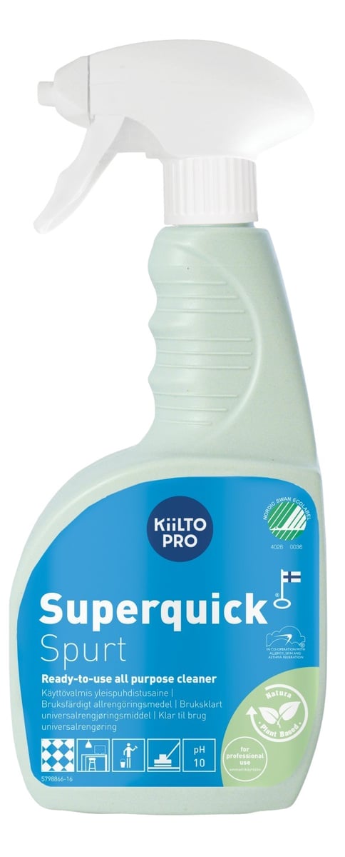 Kiilto Superquick Spurt er en svanemærket universalrengøring, der er ideel til daglig rengøring af alle vandafvisende overflader, herunder stål. Den er særligt velegnet til brug i køkkener, kantiner og andre områder, hvor der er behov for effektiv rengøring.