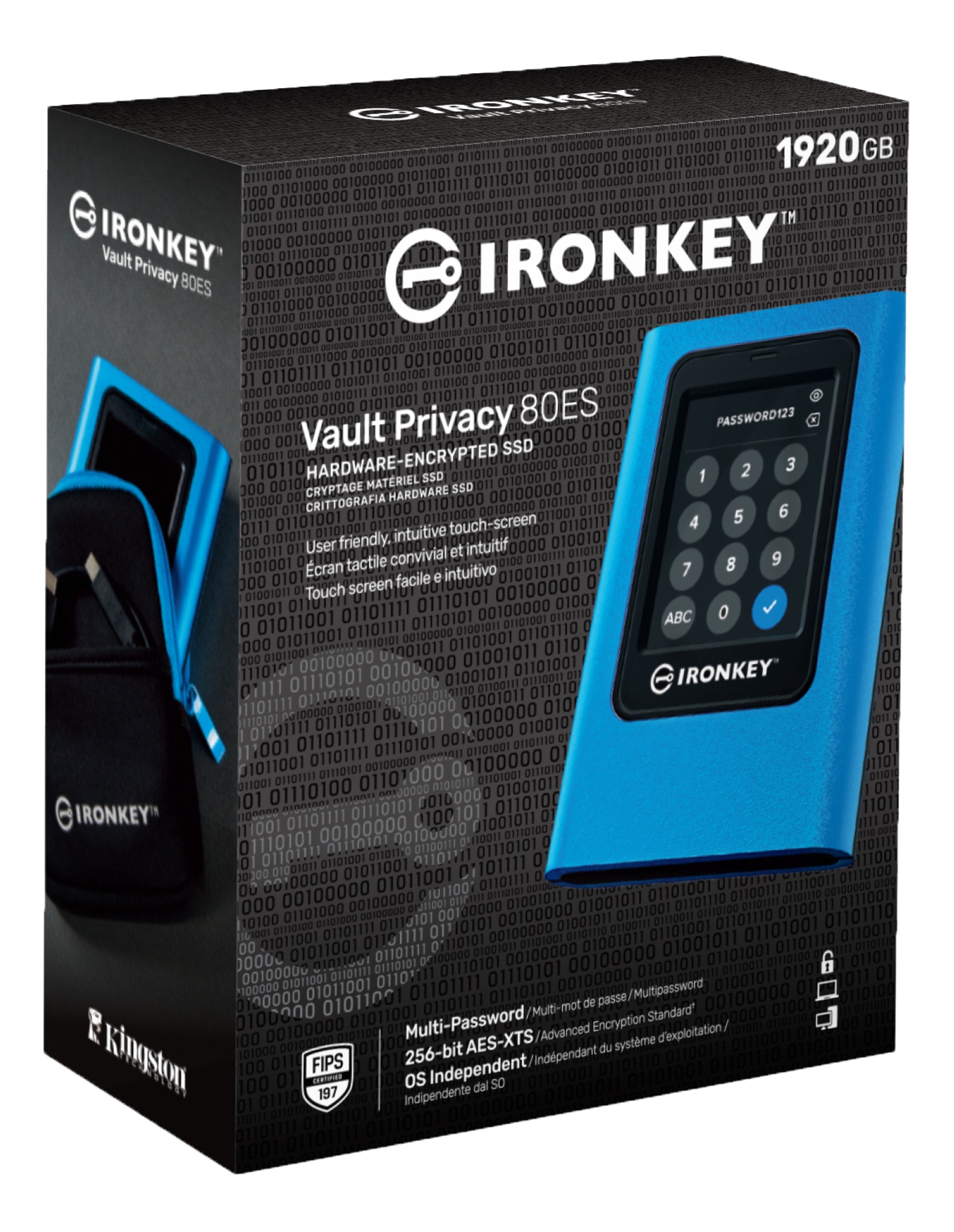Kingston IronKey™ Vault Privacy 80 External SSD er Kingston's første innovative OS-uafhængige eksterne SSD med hardwarekryptering og touchskærm til databeskyttelse. VP80ES beskytter mod Brute Force-angreb og BadUSB med digitalt signeret firmware.
