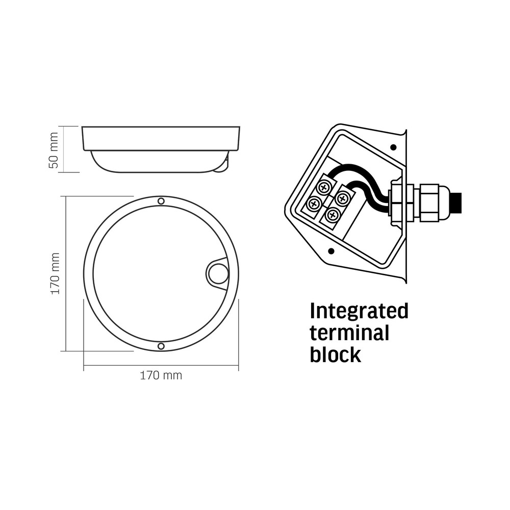 - Dimensioner: Højde 170 mm, bredde 170 mm, dybde 50 mm