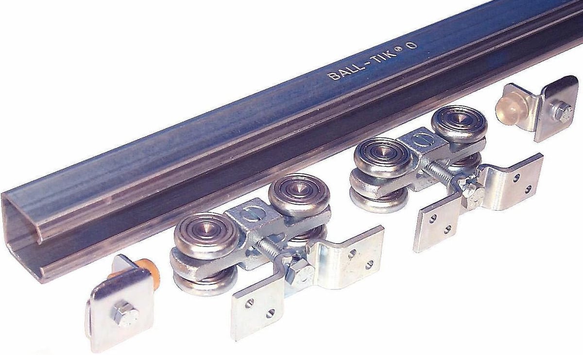 Komplet kit til loftmontage af skydelåger, indeholdende 2 portruller, 2 bæreplader og 2 skinnestop. Skinne skal købes separat.