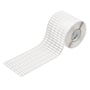 Hvidt selvklæbende polyester mærke (101x48mm) med acrylat lim, halogenfri og uden print. Leveres i ruller med 500 stk.