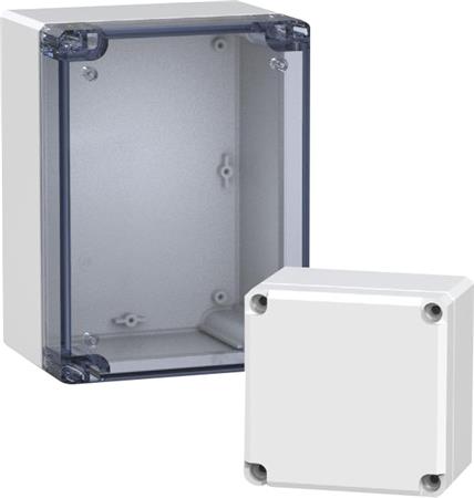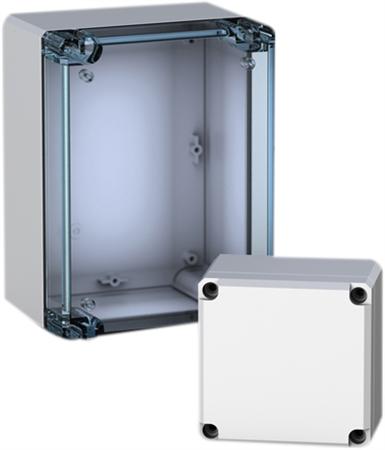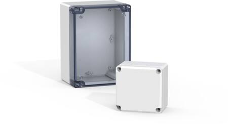 ABS-kasse til indendørs brug med polyurethanpakning. Temperaturområde: -40 °C til +60 °C. Tæthedsgrad: IP 66/67, IK07 (+35 °C), IK06 (-25 °C).
