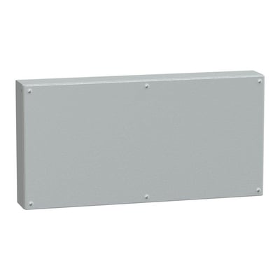 Robust metalklemkasse med dimensionerne 400x800x120 mm. IP66 og IK10-klassificeret, RAL 7035.