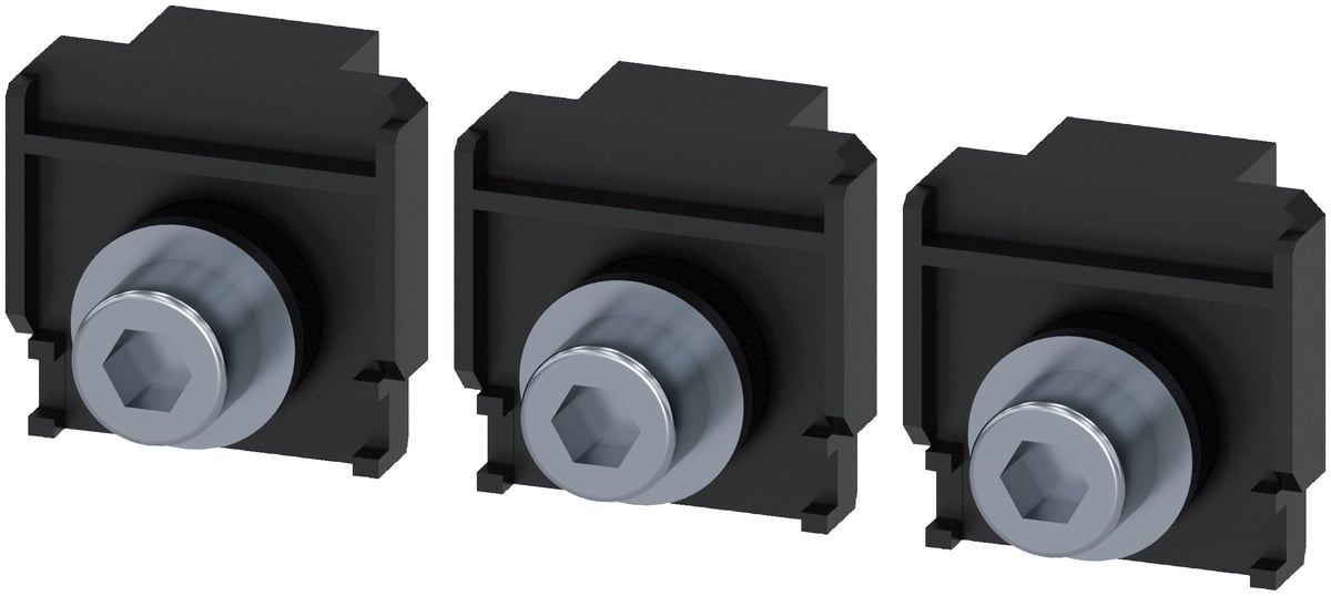 Dette sæt indeholder 3 stk. møtrikker, der fungerer som tilbehør til SENTRON 3VA støbt hus afbrydere. Klemmeholderen er designet til brug med modellerne 3VA13/14 og 3VA23/24 samt 3VA2 400/630.