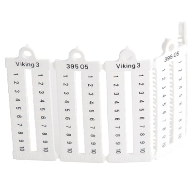 Denne Viking 3 klemmemærkning er designet til horisontal montering og passer til 5 mm klemmer.