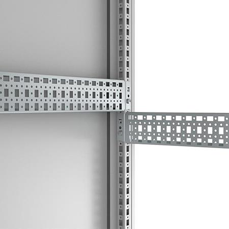 Universal profil tilpasser i dybden og bredden på 25 mm DIN hulmønster i skabsrammen. Bredde: 75 mm. Materiale: 1,5 mm forzinket stål.