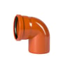 Bøjning i PVC, med muffe og spidsende samt olieresistent tætningsring. Anvendes til afløb i jord.