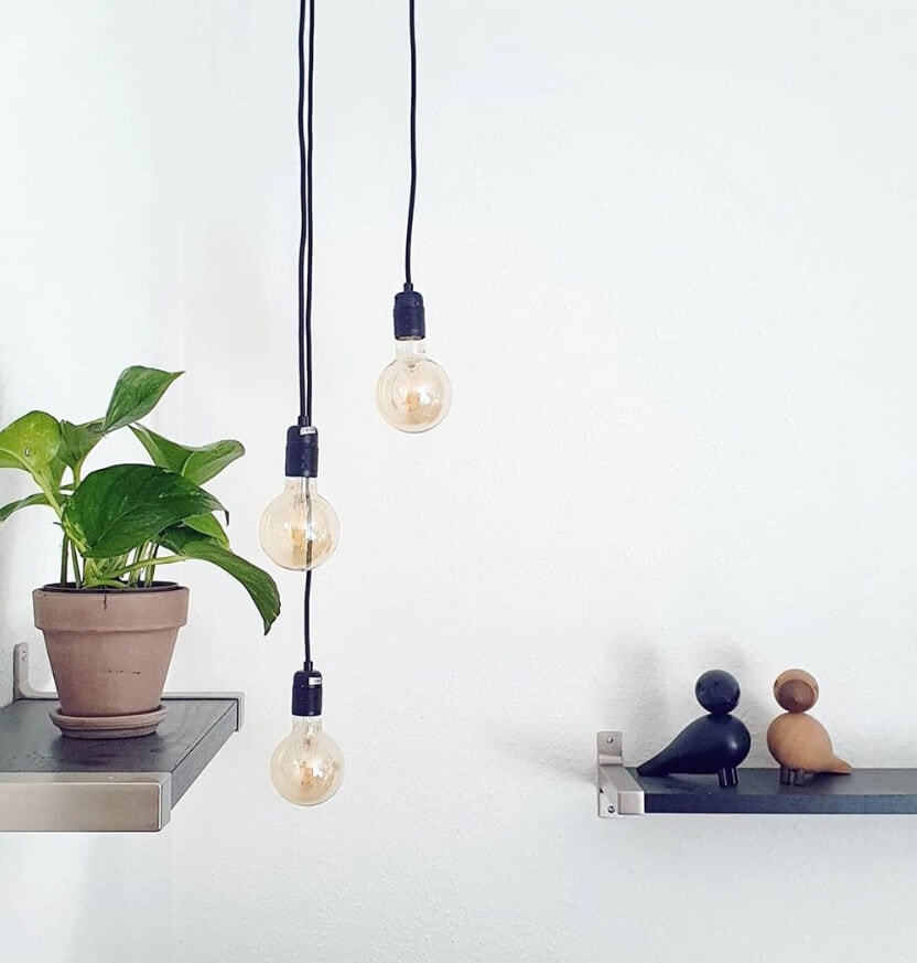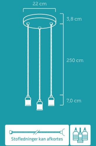 Elegant klyngependel med et simpelt design. Perfekt til dekorative pærer (medfølger ikke). Består af 3 fatningssæt med sort tekstilledning, der kan afkortes.