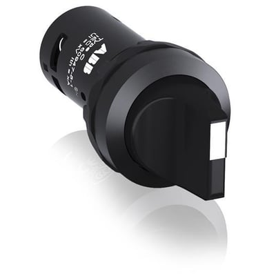 ABB Kompakt drejeomskifter med sort plastik krave, kort greb og 3 faste positioner (A-B-C). Komplet drejeomskifter Ø 22mm fra Kompakt-serien.