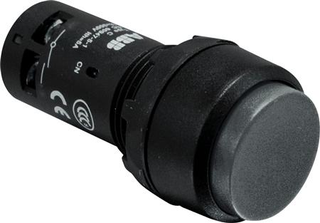 Sort trykknap med 2 sluttefunktioner og sort plastikkrave. Komplet højt tryk Ø 22mm fra ABB's kompakte serie.