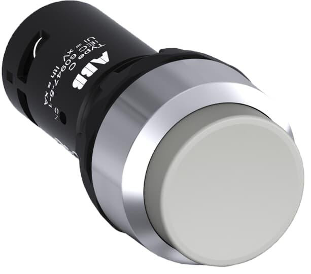 Kompakt kiptryk med grå knap, 1NC, sort plastikkrave og lavt kiptryk. Ø 22mm, fra ABB's kompakte serie.