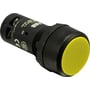 Kompakt kiptryk i gul med 2NC, sort plastikkrave og lavt design. Ø22mm, fra ABB's kompakte serie.