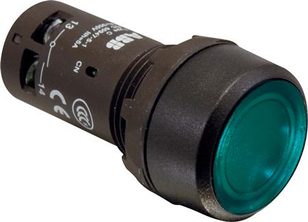 Kompakt lampetryk grøn, 110-130VAC/DC, 1 slutte, CP1-12G-10 - ABB