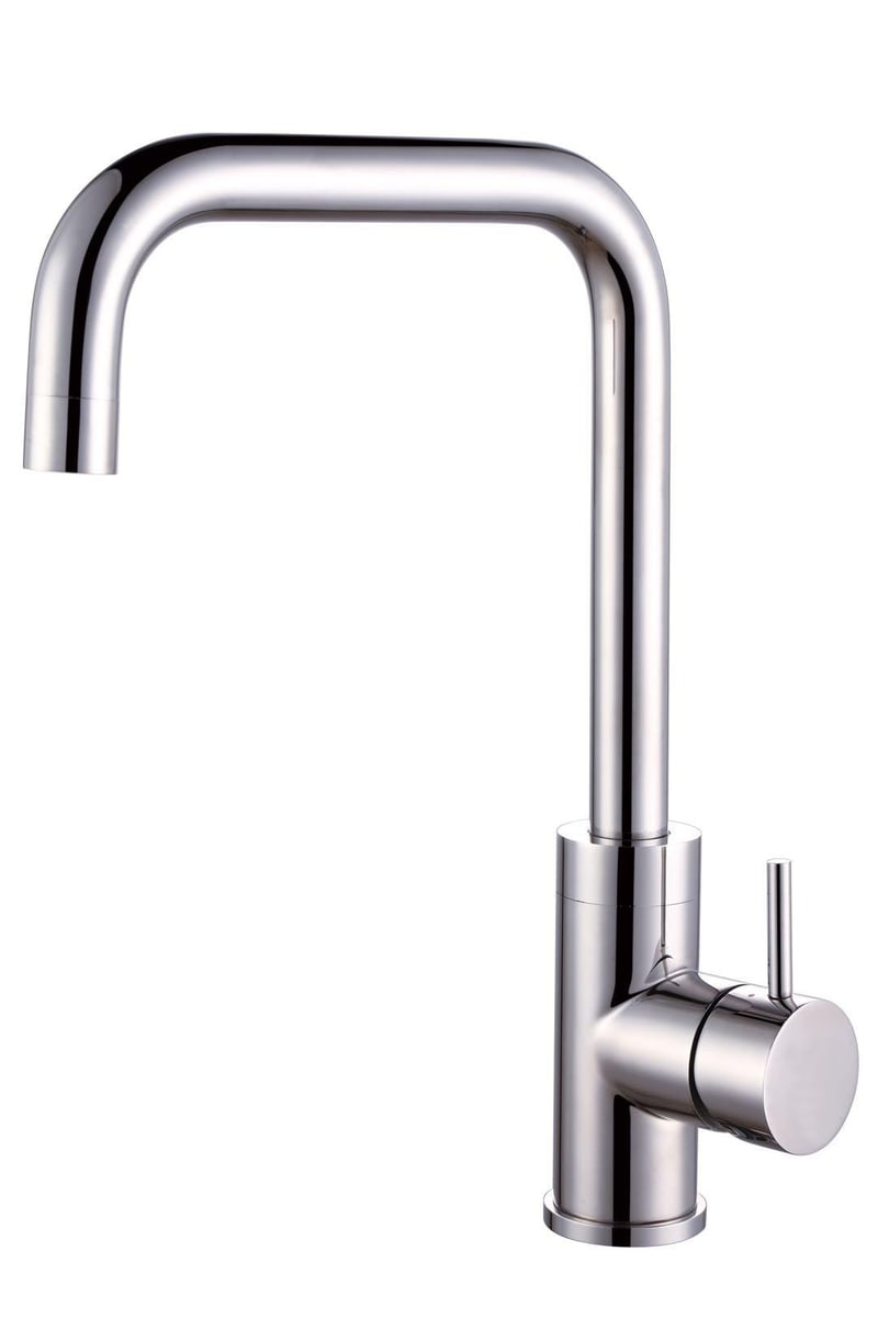 KN Vivaldi 1-grebs køkkenarmatur med U-tud i poleret rustfrit stål. Med koldstart, svingbar tud (360°) og keramisk kartusch.