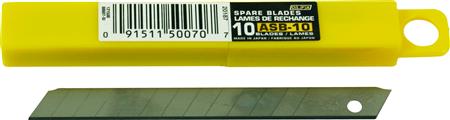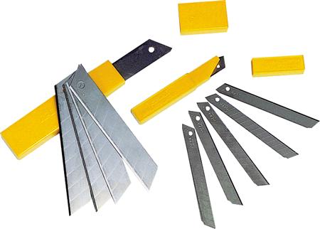 Højkvalitets 9 mm bræk-af knivblad i værktøjsstål. Lang holdbarhed og skærer igennem læder, pap, karton, film, folie, papir og træ.