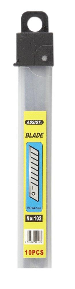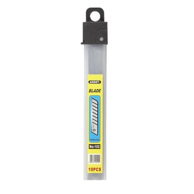 Dette knæk-af knivblad er fremstillet i SK4 stål og har en bredde på 9 mm. Det leveres i en praktisk plastboks, der indeholder 10 stk. knivblade.