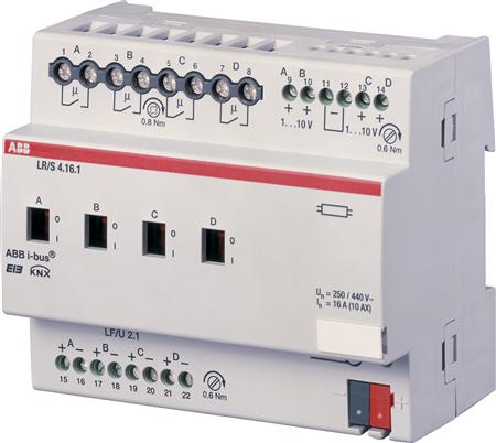 ABB KNX 1-10V lysreguleringsaktuator (LR/S4.16.1) er en 4-kanals, 16A MDRC aktuator, der anvendes til dagslysregulering af 1-10V armaturer. Den er kompatibel med lyssensor LF/U2.1.
