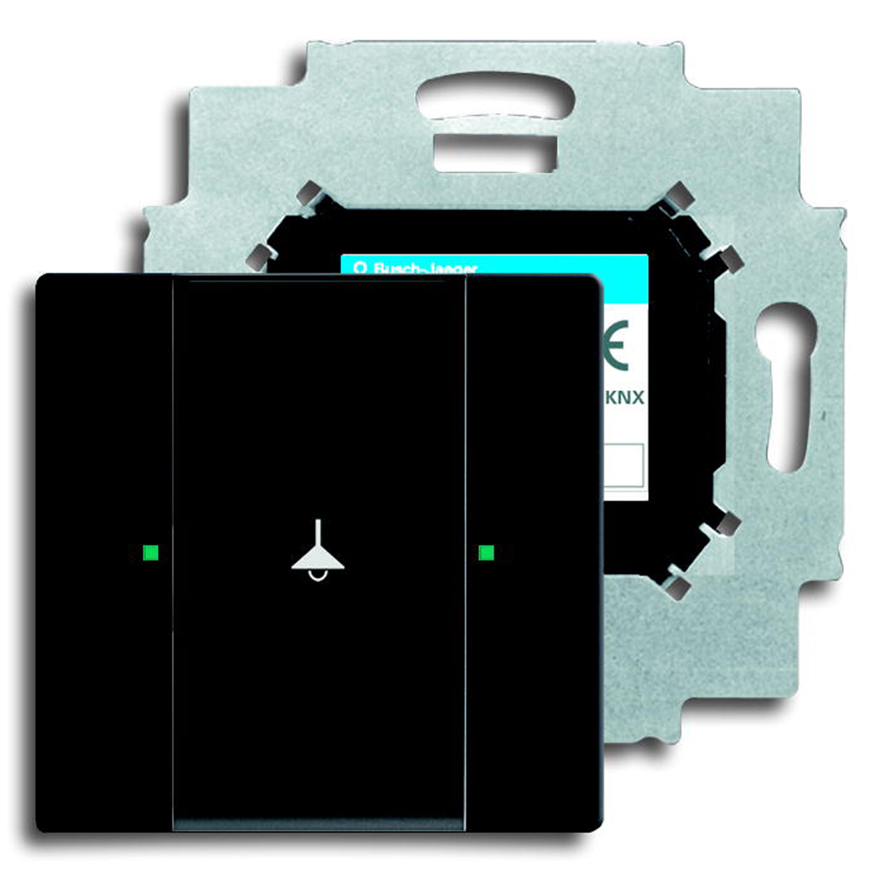 KNX betjeningselement fra ABB med 1-tryk funktion. Betjeningselementer: trykkontakt venstre/højre. LED til visning af kontakttilstand.
