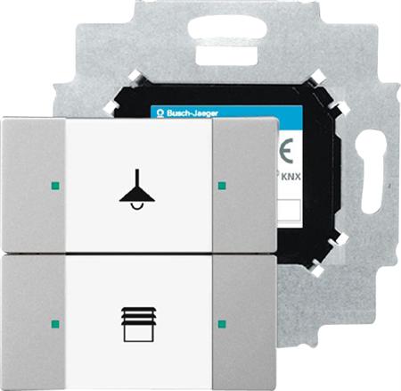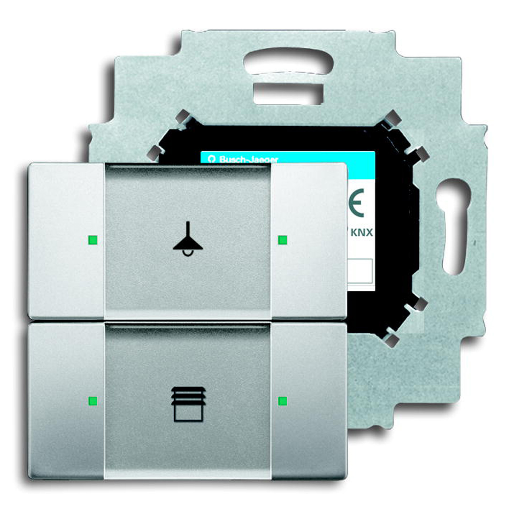 Dette KNX betjeningselement fra ABB er designet med fokus på funktionalitet og æstetik. Med sine to trykknapper og et stilrent design i rustfrit stål passer det ind i de fleste moderne installationer.