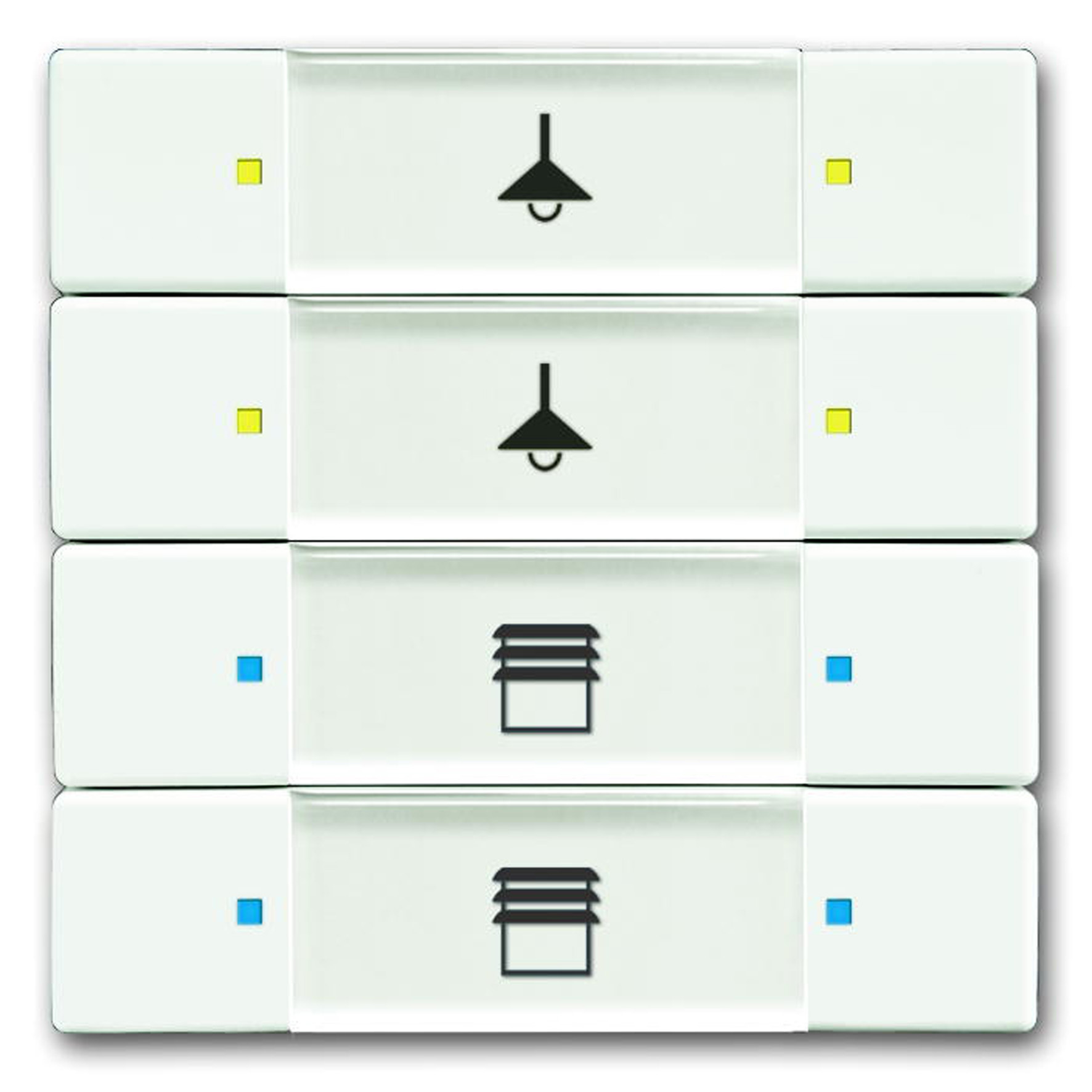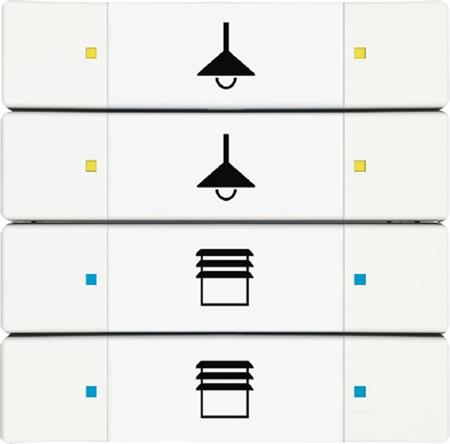 - Trykknapfunktion: tænd/sluk/dæmpning/persienner/sende værdier/lysscener