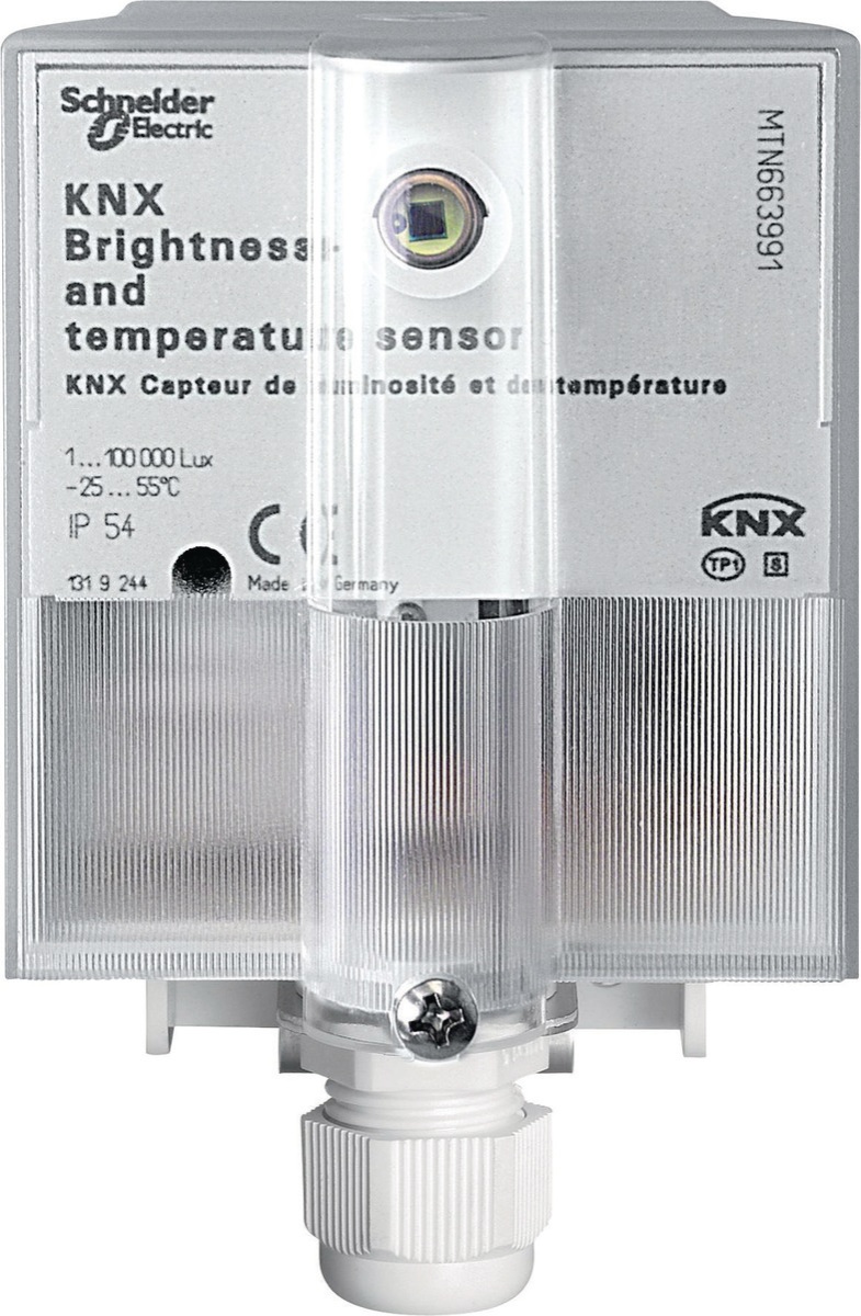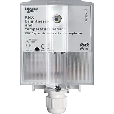 KNX lys- og temperatursensoren er egnet til lysstyrke- og temperaturmåling i KNX systemet. De målte værdier sendes til KNX bussen.