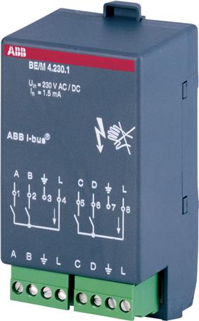 ABB KNX binære indgangsmoduler til kontaktscanning. Modulet er designet til montage i en Room Controller og udstyret med 4 indgange.