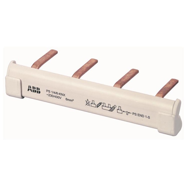 ABB KNX strømskinne med 1 fase og 4 kontakter. Til sammenkobling af faseforsyningen til flere potentialfrie kontakter. Reducerer behovet for ledningstrækning og sikrer sikker sammenkobling.