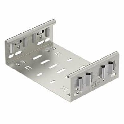 Forbindelsen er udstyret med fire klemmer, hvilket gør monteringen hurtig og ukompliceret. Den kan også anvendes til direkte forbindelse med en tilskåret kabelbakke ved at benytte to klemmer på den ene side. For at forbinde en tilskåret kabelbakke med en formdel kræves et Magic-længdeforbindelses-sæt.