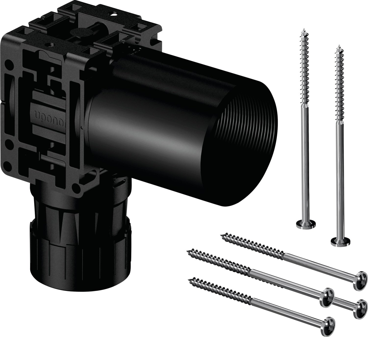 Koblingsdåse med vinkel i afzinkningsfri messing til FPL-X kompressionskoblingssæt og monteringsskruer. Til vandtæt samling med PE-Xa rør og Uponor tomrør.