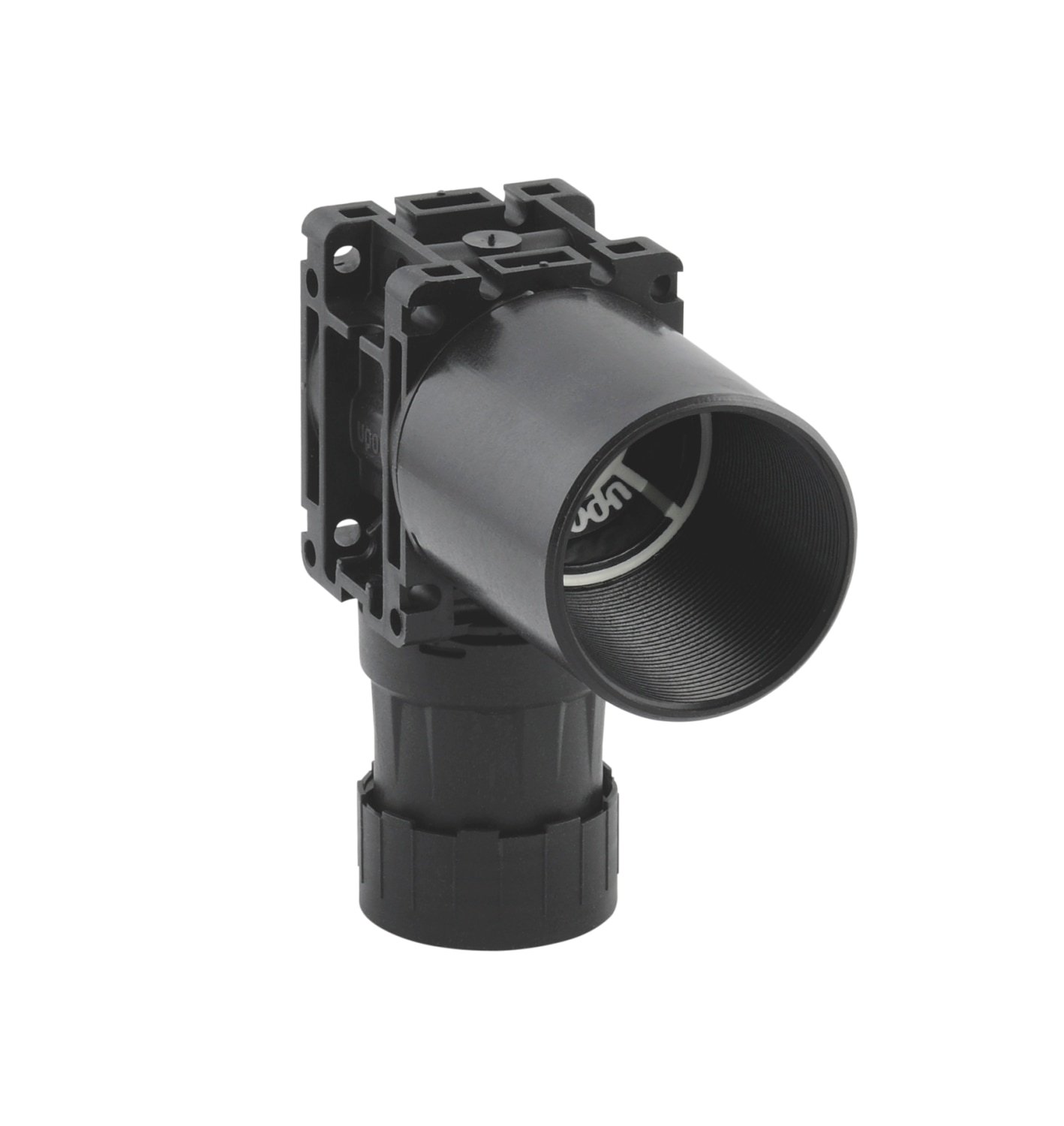 Denne koblingsdåse er udstyret med en vinkel i afzinkningsfri messing, der passer til FPL-X kompressionskoblingssæt. Den leveres inklusive monteringsskruer, hvilket gør installationen nemmere.