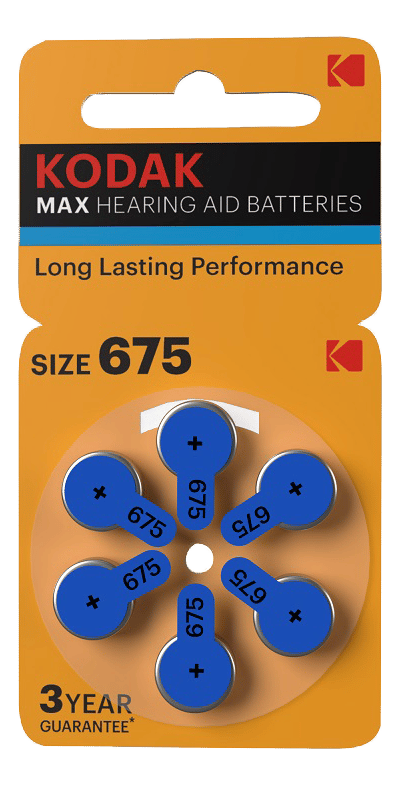 KODAK Hearing Aid Battery Model P675 / PR44, Color Code: Blue, 1.45v, 6-pack.