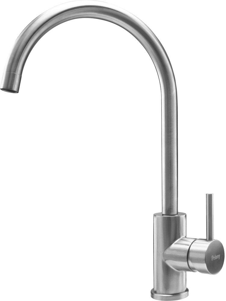 Primy Steel Curve køkkenarmatur i matbørstet rustfrit stål. Tidløst design med bløde linjer og minimalistiske detaljer. Drejbar tud.