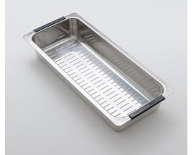 BALTIC 5016 er en firkantet enkeltkumme i poleret rustfrit stål med hanehul, ribbet overløb, kurveventil og vandlås, designet til planlimning.
