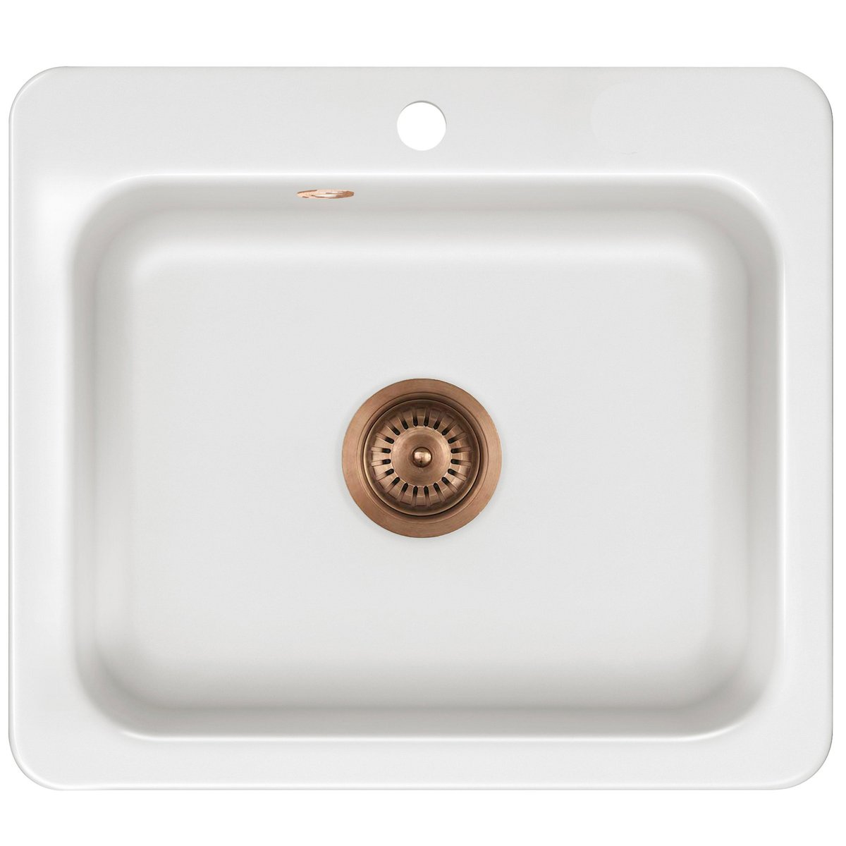 Juna 57 køkkenvask er kendetegnet ved bløde buer i et organisk design. Den har en 50 cm bred kumme, en elegant kant og integreret hanehul, der får vasken til at gå i et med omgivelserne.