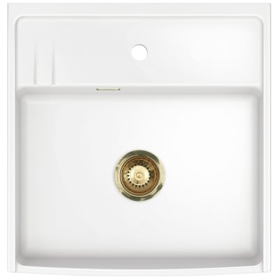 Kentro 60 keramik køkkenvask, hvid med PVD messing afløb