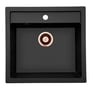 Jupiter 60 køkkenvask i sort kompositmateriale. Kan monteres som nedfældning eller underlimning. Inkluderer hanehul, overløb og bundventil i kobber.