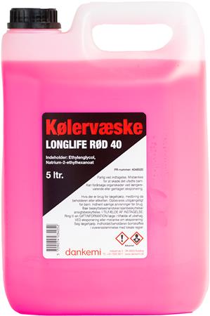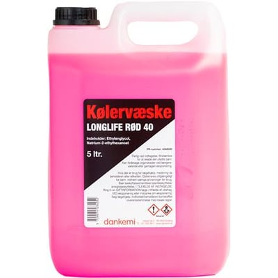 Kølervæske long life rød 40, 5 liter. Frostsikring ned til -40°C.