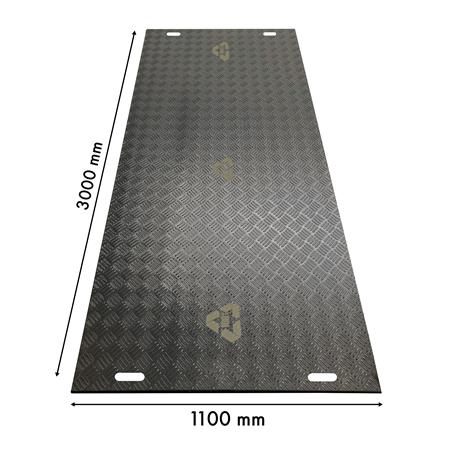 Køreplade til midlertidige kørebane- eller bundplader. Beskytter mod skader fra f.eks. gravemaskiner ved byggearbejde. Produceret i 100% LDPE genbrugsplast.