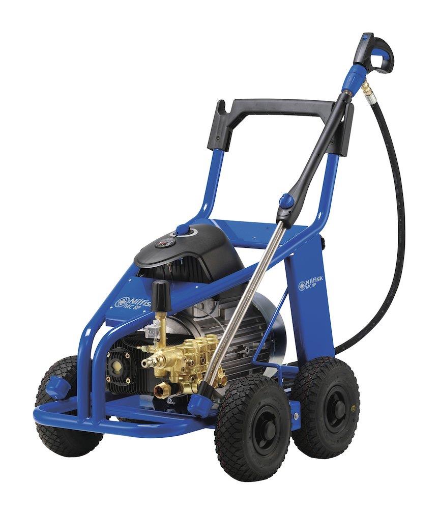 Koldtvandsrenseren er udstyret med en kraftig pulverlakeret stålramme og luftfyldte gummihjul med bremse, hvilket gør den nem at manøvrere og stabil under brug. Dyserørsholderen sikrer, at du altid har det nødvendige udstyr lige ved hånden.
