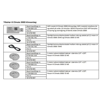 - Kompatibilitet: Climate 3000i 2,6 kW, 3,5 kW og 5,3 kW modeller