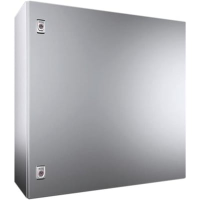 Kompakt styretavle AX i rustfri stål 1.4301. Mål: 760x760x300 mm. Med enkelt låge og to vridelåse.