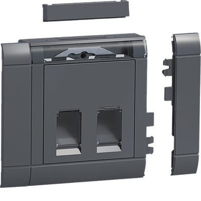 Komplet dobbelt dataudtag, kompatibelt med Metz Connect / BTR E-DAT modulformat. Kabelafgang i 45° vinkel. Testet med RJ45-modulstik fra LEONI, MegaLine® Connect45, Metz Connect / BTR, Hager.