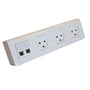 Komplet arbejdsstation i underlag med 3 danske stikkontakter og dobbelt Kat.6 UTP dataudtag.