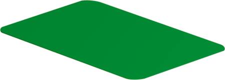 Grønt, selvklæbende polyester mærke (18x27mm) med akrylat lim, halogenfri og uden print. Leveres på rulle med 1000 stk.