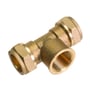 Conex kompressions T-stykke med klemring og gevindmuffe. Velegnet til kobber, PEX og tyndvæggede stålrør. Bruges til drikkevand, varme og gas.