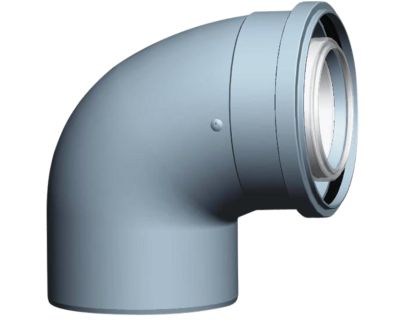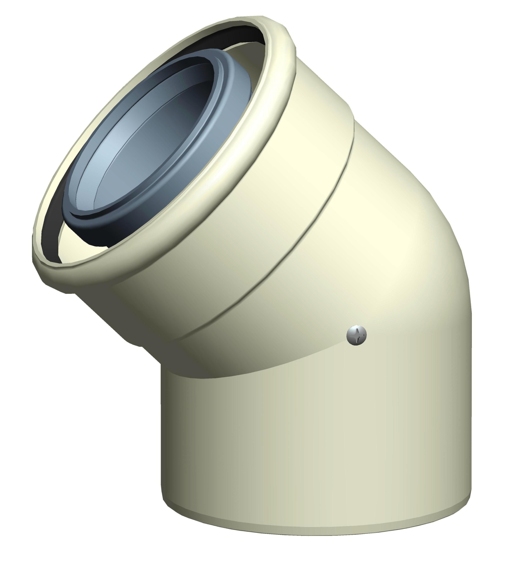 Koncentrisk aftræksbøjning fra Milton Megatherm, dimension 60/100 mm og 45° bøjning. Ideel til gaskedler.